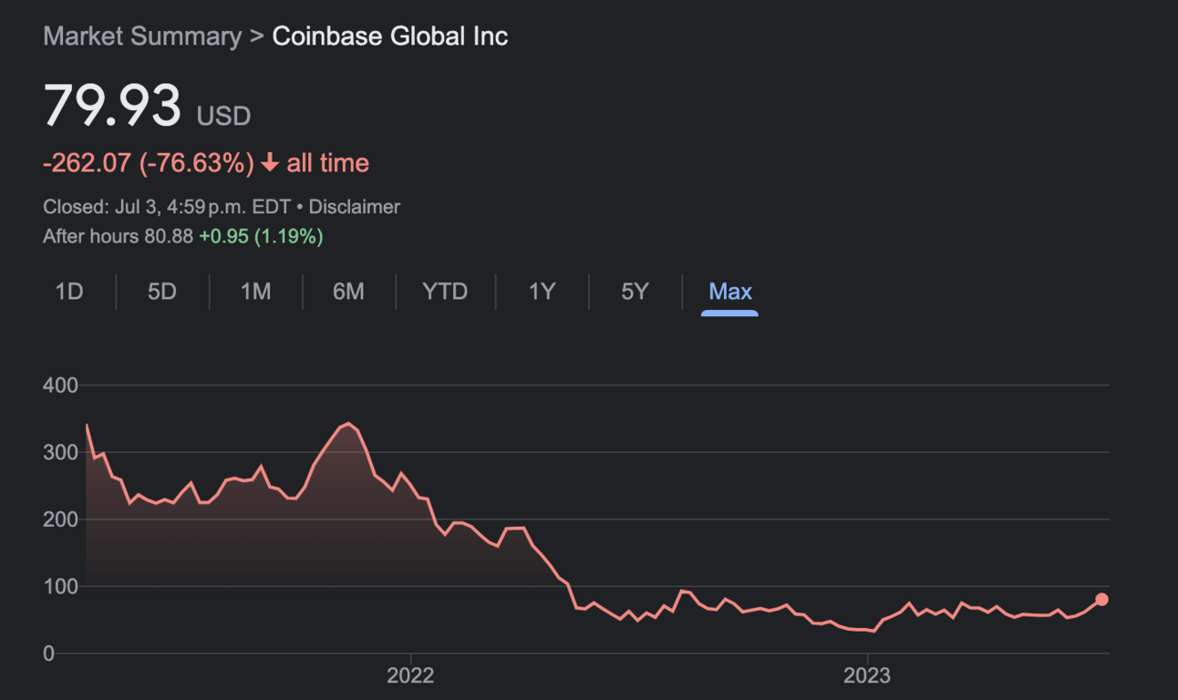 But despite all of this, all of these stocks are still down significantly from their all-time highs, with CoinBase being down over 76% since it peaked in April 2021.