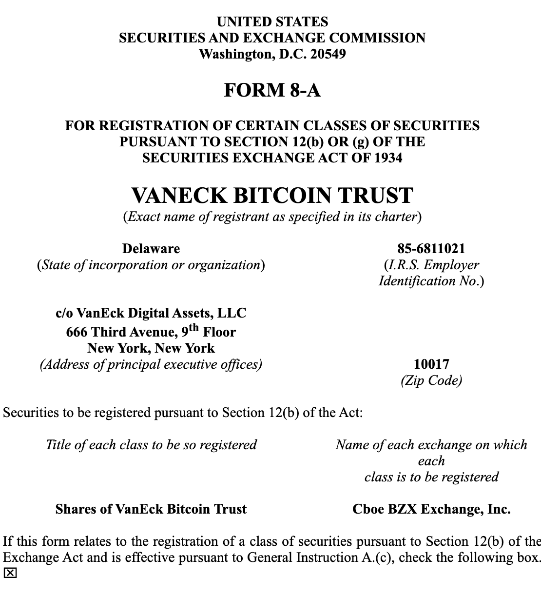 Earlier today, Grayscale, Ark Investments, Valkyrie, and VanEck became the latest firms to file their Form 8-A’s, which admittedly strongly signals progress towards a potential spot bitcoin exchange-traded fund.