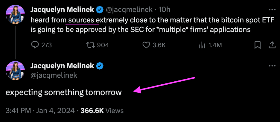 Let's assume for a moment that the media and their unnamed "sources" are correct, and that the Bitcoin Spot ETFs will be approved either tomorrow by the SEC or sometime next week.