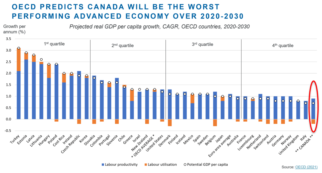 Toronto's goal to build record-setting condo skyscrapers comes at a difficult time. The OECD predicts that Canada will have the worst economy among the G7 nations in the next decade. This is terrible news and raises concerns about the risks of the current housing market boom.